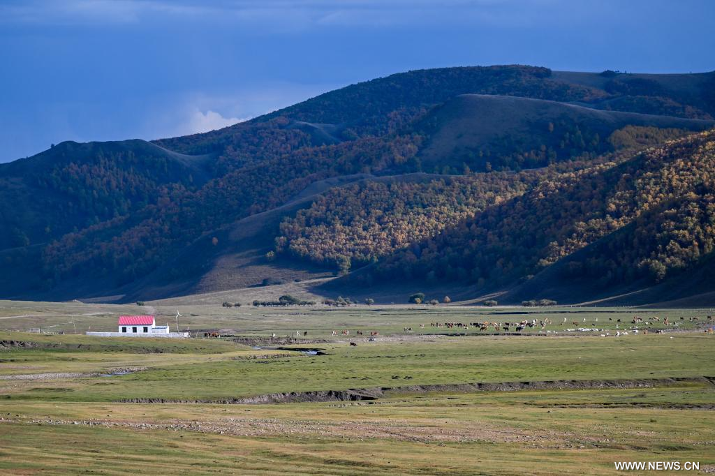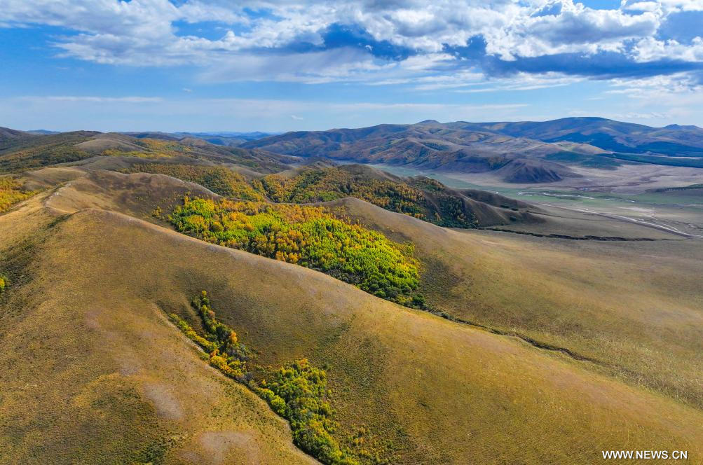 تونغلياو 22 سبتمبر 2025 (شينخوا) في الصورة الملتقطة يوم 20 سبتمبر 2025 ، منظر خريفي لجبل هانشان في راية جارود بمدينة تونغلياو في منطقة منغوليا الداخلية ذاتية الحكم بشمالي الصين. وتعد محمية جبل هانشان الطبيعية الوطنية في شمالي البلاد، التي أُنشئت عام 2013، حاجزا إيكولوجيا ومنطقة لحفظ المياه لمروج هورتشين.
