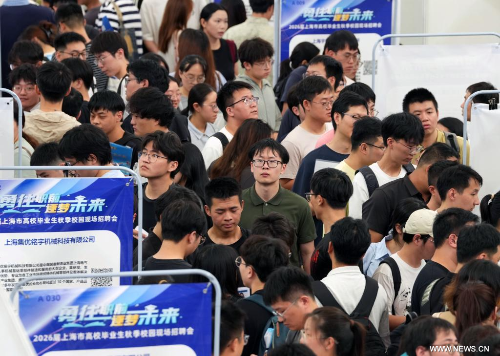 شانغهاي 27 سبتمبر 2025 (شينخوا) في الصورة الملتقطة يوم 26 سبتمبر 2025، مشهد من معرض توظيف خريفي لخريجي جامعات شانغهاي في حرم مينهانغ بجامعة شانغهاي جياو تونغ في بلدية شانغهاي بشرقي الصين.