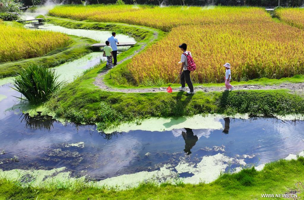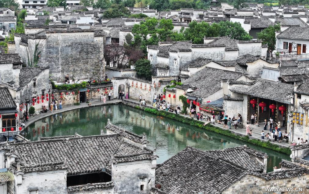 ييشيان 2 أكتوبر 2025 (شينخوا) في الصورة الملتقطة يوم أول أكتوبر 2025، سياح يستمتعون بوقتهم في قرية شيدي بمحافظة ييشيان في مقاطعة آنهوي بشرقي الصين. واستقبلت قريتا شيدي وهونغتسون التاريخيتان، وهما موقعان مدرجان على قائمة اليونسكو للتراث العالمي في محافظة ييشيان، عددا كبيرا من السياح في اليوم الأول من عطلة العيد الوطني، بفضل هندستهما المعمارية الأنيقة ومناظرهما الطبيعية الخلابة.