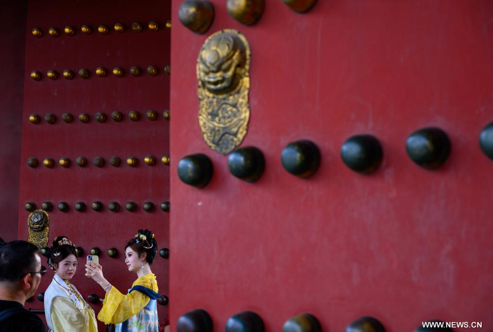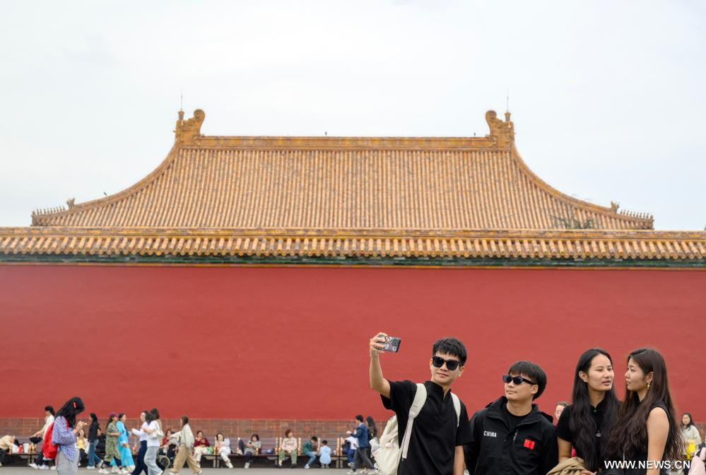 بكين 4 أكتوبر 2025 (شينخوا) في الصورة الملتقطة يوم 2 أكتوبر 2025، زوار في متحف القصر الإمبراطوري، المعروف أيضا باسم المدينة المحرمة، في العاصمة الصينية بكين.