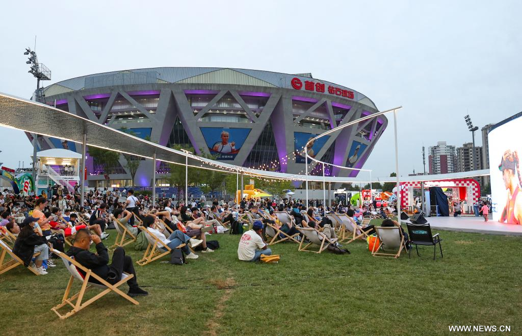 بكين 6 أكتوبر 2025 (شينخوا) في الصورة الملتقطة يوم أول أكتوبر 2025، مشجعون يشاهدون مباراة خارج ملعب في بطولة الصين المفتوحة للتنس 2025 في العاصمة الصينية بكين.