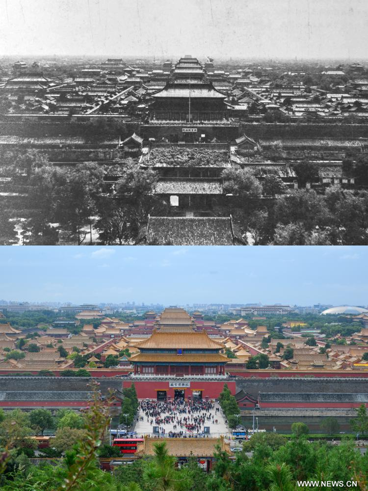 بكين 11 أكتوبر 2025 (شينخوا) في الصورة المجمعة، جانب من متحف القصر الإمبراطوري ببكين في أوائل القرن العشرين (الأعلى) وفي يوم 10 أكتوبر 2025 (الأسفل).