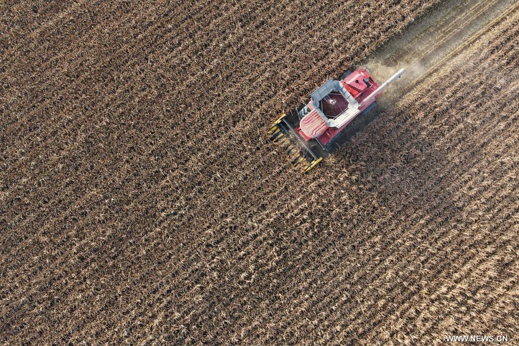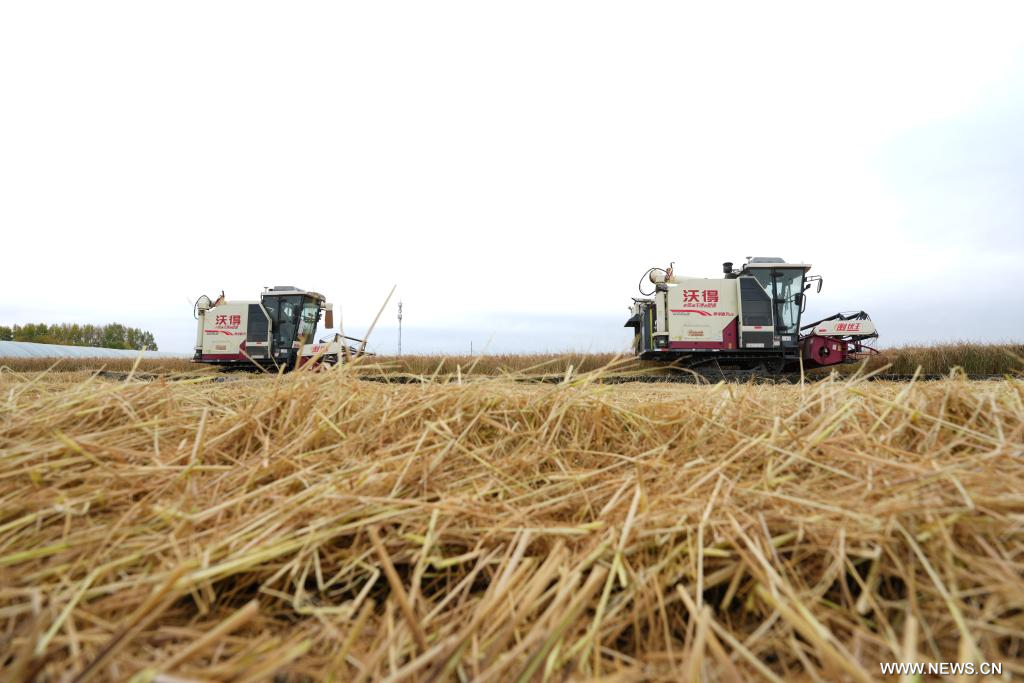 هاربين 13 أكتوبر 2025 (شينخوا) في الصورة الملتقطة يوم 11 أكتوبر 2025، جانب من حصاد المحاصيل الزراعية في مدينة هاربين في مقاطعة هيلونغجيانغ بشمال شرقي الصين.