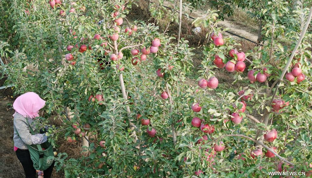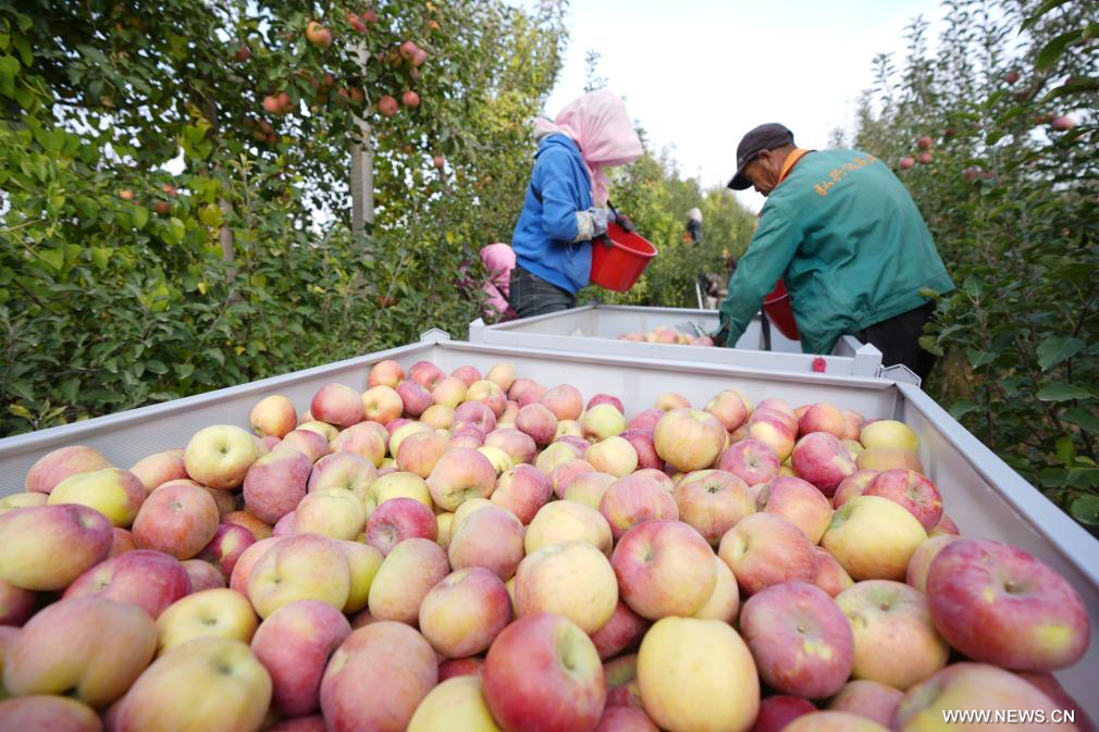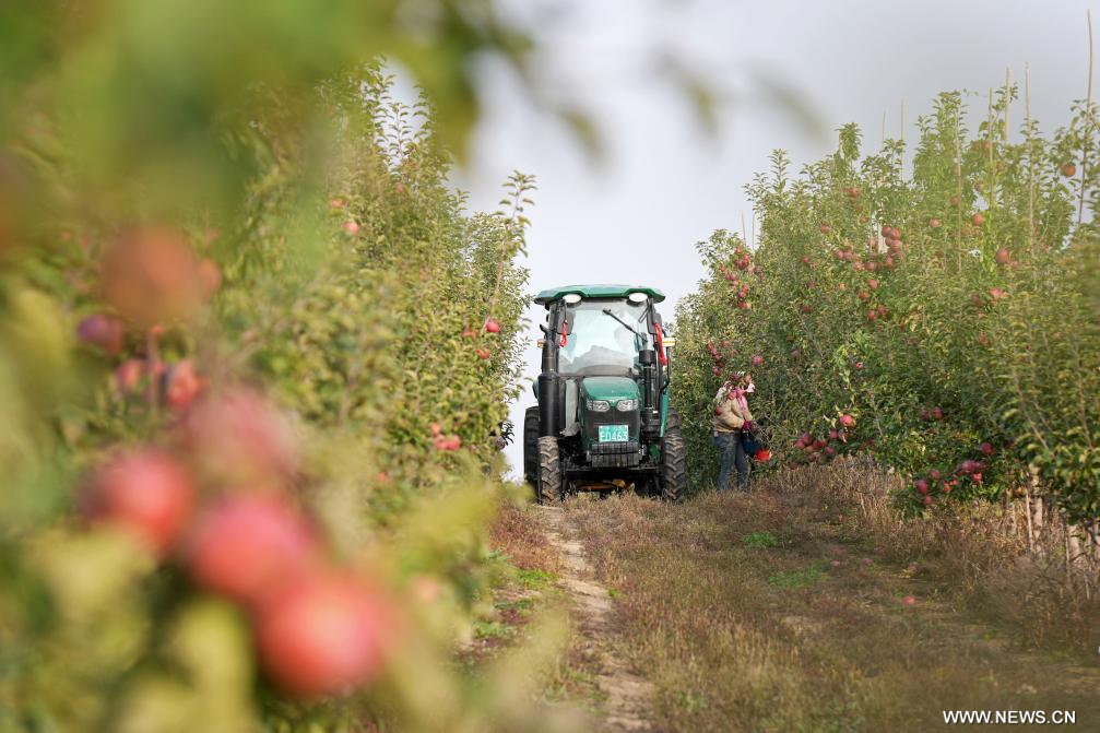 حصاد وافر لثمار التفاح في مدينة تشونغوي بشمال غربي الصين
