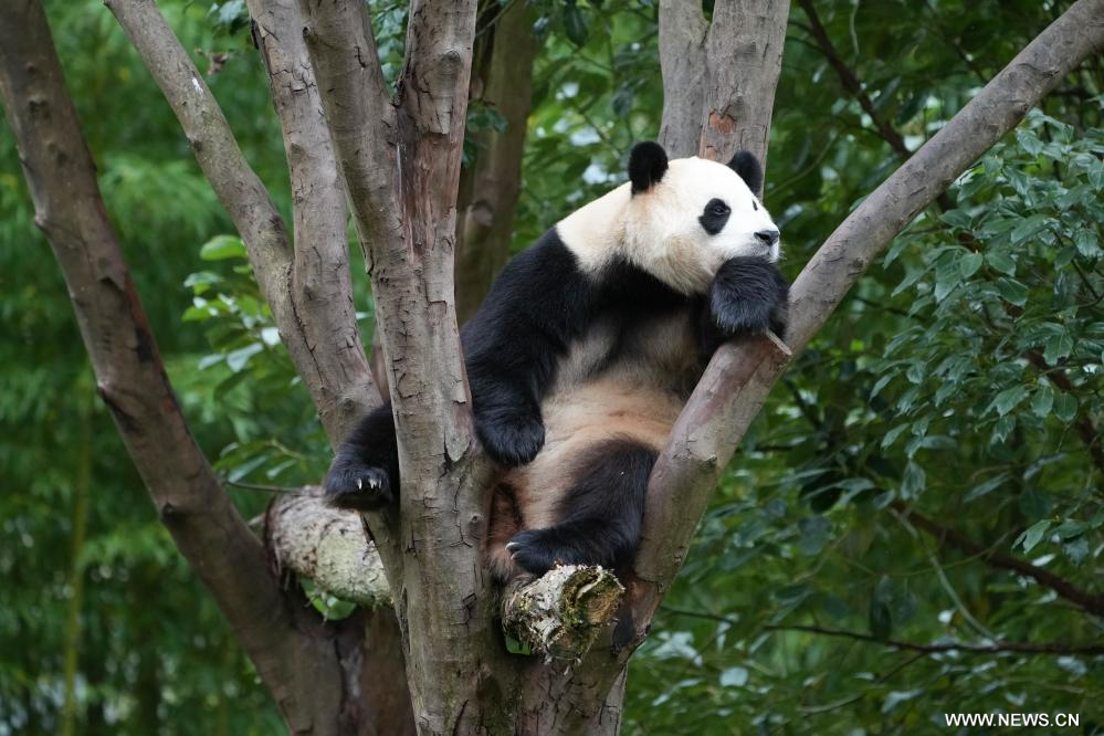 تشنغدو 9 نوفمبر 2025 (شينخوا) في الصورة الملتقطة يوم 6 نوفمبر 2025، الباندا العملاقة "سن سن" في قاعدة شنشوبينغ للباندا العملاقة بمحمية وولونغ الطبيعية الوطنية في مقاطعة سيتشوان بجنوب غربي الصين.