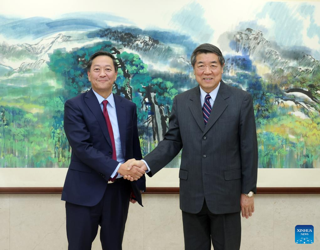 بكين 12 نوفمبر 2025 (شينخوا) التقى المسؤول الصيني الكبير خه لي فنغ يوم الثلاثاء الماضي مع جوزيف باي، الرئيس التنفيذي المشارك لشركة كولبرج كرافيس روبرتس (كيه كيه آر) في بكين.