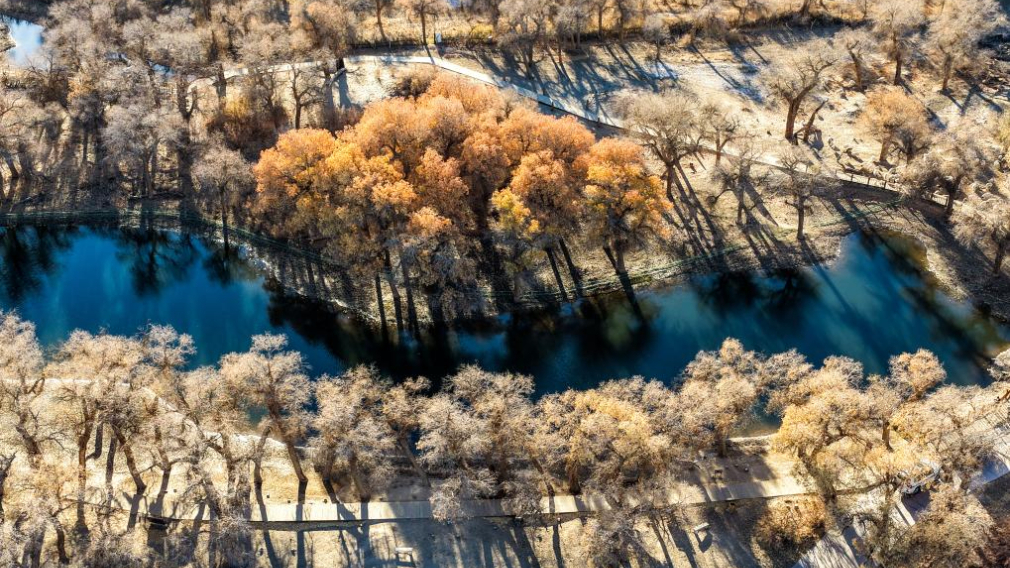 موخه 12 نوفمبر 2025 (شينخوا) في الصورة الملتقطة يوم 11 نوفمبر 2025، مناظر تدفق الجليد في قسم موخه لنهر هيلونغجيانغ في مقاطعة هيلونغجيانغ بشمال شرقي الصين.