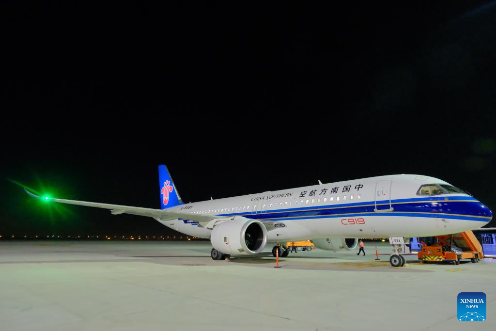 دبي 14 نوفمبر 2025 (شينخوا) وصلت طائرة من طراز سي 919 تابعة لشركة جنوب الصين للخطوط الجوية، إلى مطار آل مكتوم الدولي في دبي في وقت مبكر من صباح اليوم (الجمعة)، وذلك للمشاركة لأول مرة في معرض دبي للطيران 2025، حسبما أعلنت شركة الطيران.
