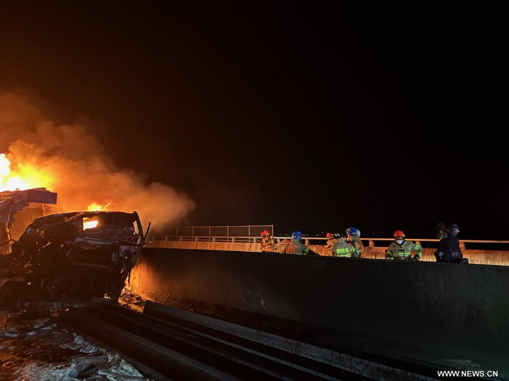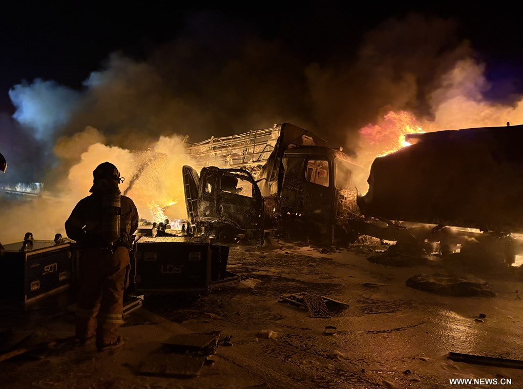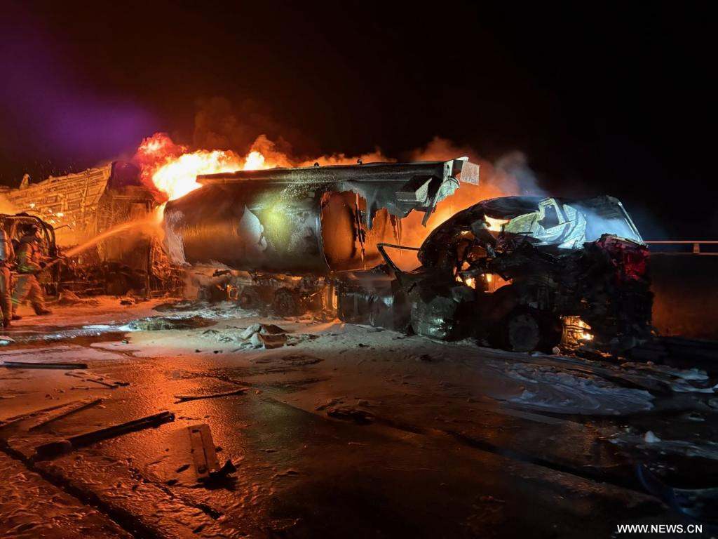 سول 17 نوفمبر 2025 (شينخوا) لقي شخصان مصرعهما وأصيب أربعة آخرون في وقت مبكر من اليوم (الاثنين) إثر حادث تصادم متسلسل شمل 13 مركبة، من بينها شاحنة صهريجية وشاحنات بضائع وسيارات ركاب، في كوريا الجنوبية، حسبما أفادت وكالة ((يونهاب)) للأنباء.
