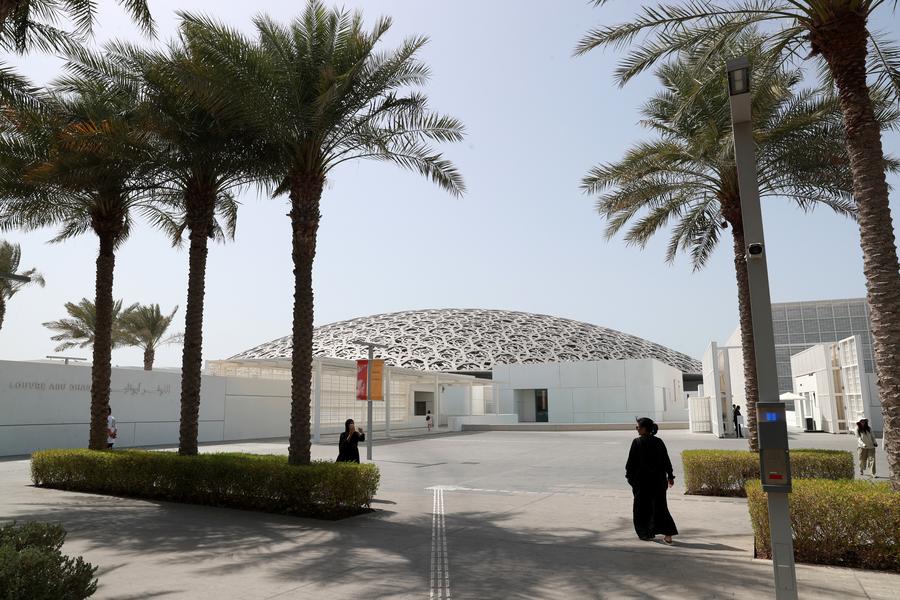 أشخاص يزورون متحف اللوفر أبوظبي في العاصمة الاماراتية أبوظبي في 3 سبتمبر 2024. (شينخوا)