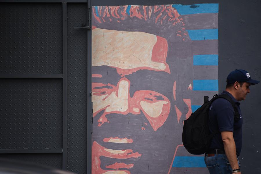 شخص يمر بجدارية في العاصمة الفنزويلية كاراكاس في 5 نوفمبر 2025. (شينخوا)