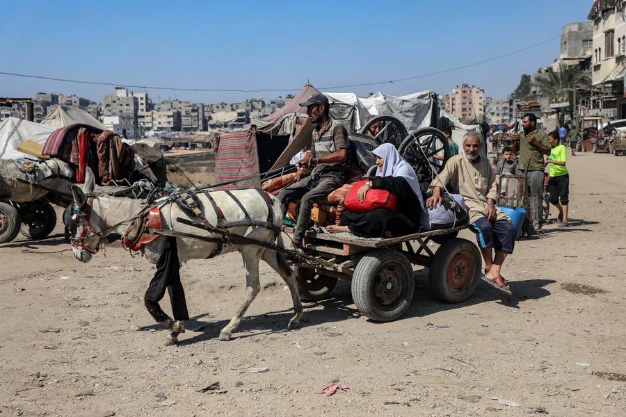 غزة 26 نوفمبر 2025 (شينخوا) يهتز جسد أحمد زقوت فوق عربة يجرها حمار، بينما يشق طريقه صباحاً عبر شارع مليء بالحفر والأنقاض في وسط غزة، في مشهد بات مألوفا لسكان القطاع الذين أضطر الكثير منهم إلى استخدام وسائل نقل بدائية، وسط نقص حاد في المركبات وارتفاع كبير في أسعار الوقود.