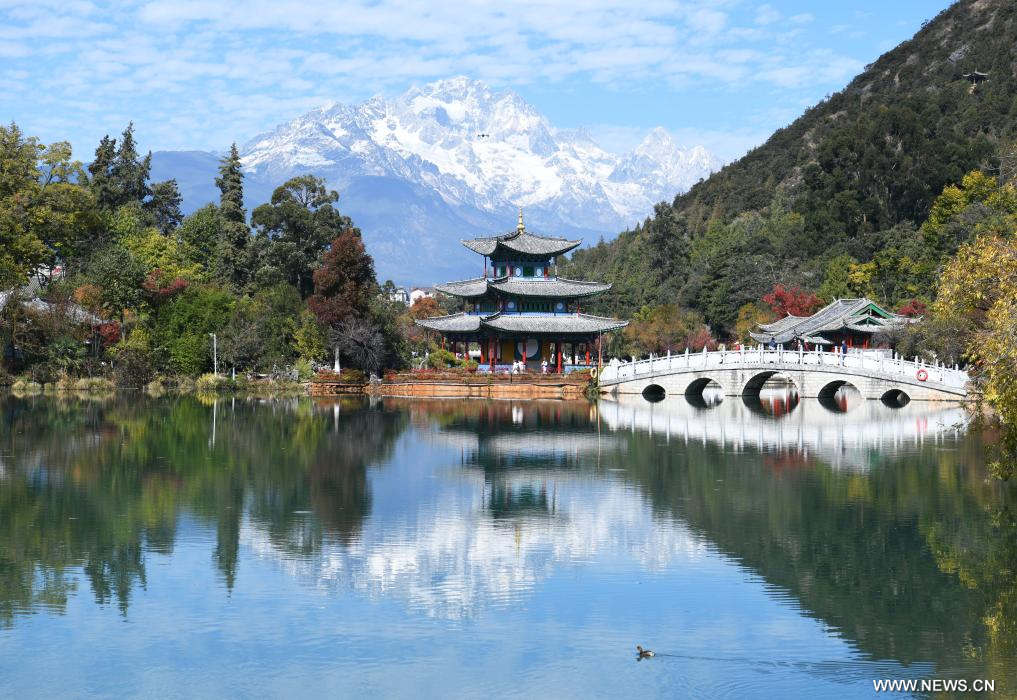 ليجيانغ 30 نوفمبر 2025 (شينخوا) في الصورة الملتقطة يوم 28 نوفمبر 2025 من حديقة هيلونغتان، منظر أخاذ لجبل يويلونغ الثلجي في مدينة ليجيانغ بمقاطعة يوننان في جنوب غربي الصين.