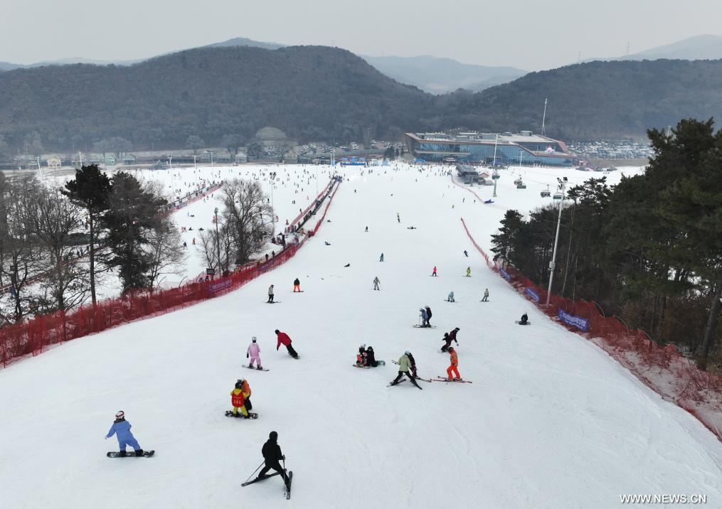 شنيانغ 7 ديسمبر 2025 (شينخوا) في الصورة الملتقطة يوم 6 ديسمبر 2025، هواة التزلج يستمتعون بأوقاتهم في منتجع التزلج بمدينة شنيانغ، حاضرة مقاطعة لياونينغ بشمال شرقي الصين.