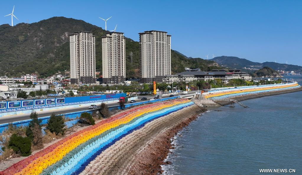 فوتشو 8 ديسمبر 2025 (شينخوا) في الصورة الملتقطة يوم 6 ديسمبر 2025، جانب لسد ملون في محافظة ليانجيانغ في مقاطعة فوجيان بجنوب شرقي الصين.