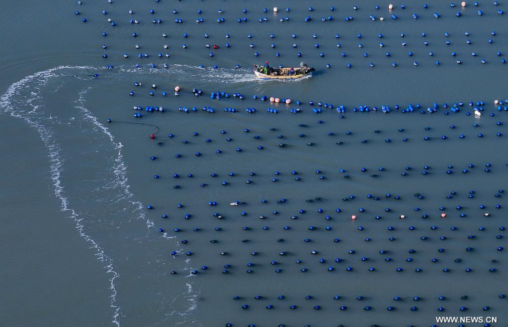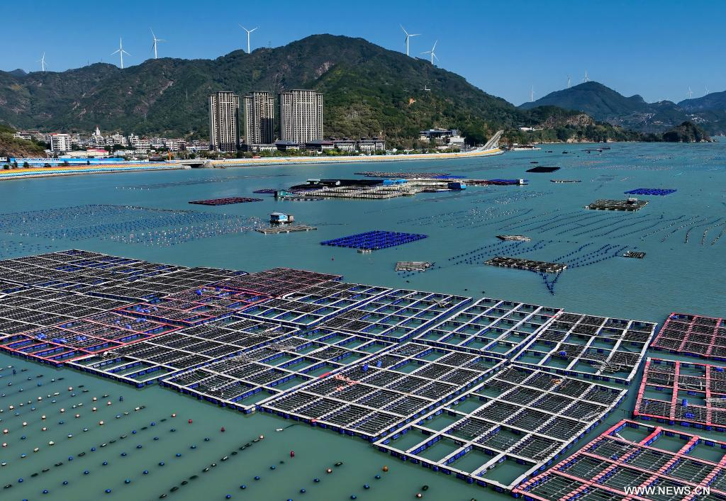 فوتشو 8 ديسمبر 2025 (شينخوا) في الصورة الملتقطة يوم 6 ديسمبر 2025، جانب لمزرعة بحرية في محافظة ليانجيانغ في مقاطعة فوجيان بجنوب شرقي الصين.
