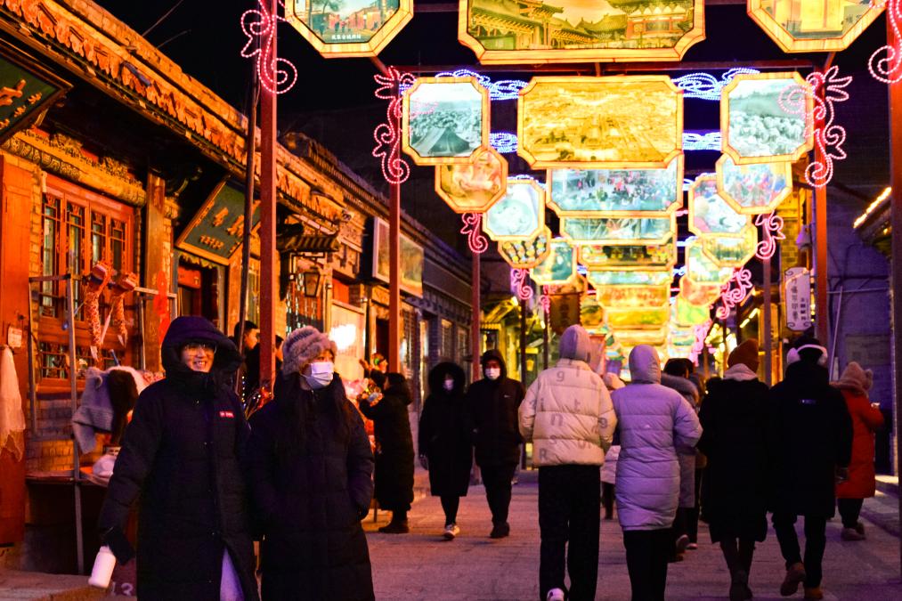 شينينغ 4 يناير 2026 (شينخوا) في الصورة الملتقطة يوم 2 يناير 2026، سياح يستمتعون بالفوانيس في مدينة قديمة بمحافظة هوانغيوان بمدينة شينينغ في مقاطعة تشينغهاي بشمال غربي الصين.