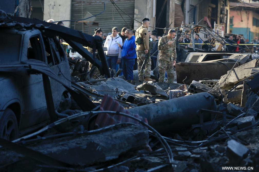 صيدا، لبنان 6 يناير 2026 (شينخوا) في الصورة الملتقطة يوم 6 يناير 2026، جنود من الجيش اللبناني يبحثون عن ناجين بين الأنقاض بعد غارة إسرائيلية على قضاء صيدا جنوبي لبنان.