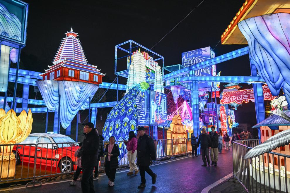تشونغتشينغ أول فبراير 2026 (شينخوا) في الصورة الملتقطة يوم 30 يناير 2026، أناس يزورون مهرجان الفوانيس في حديقة معرض البستنة في بلدية تشونغتشينغ بجنوب غربي الصين.