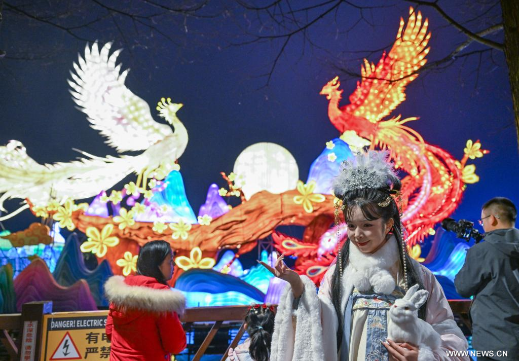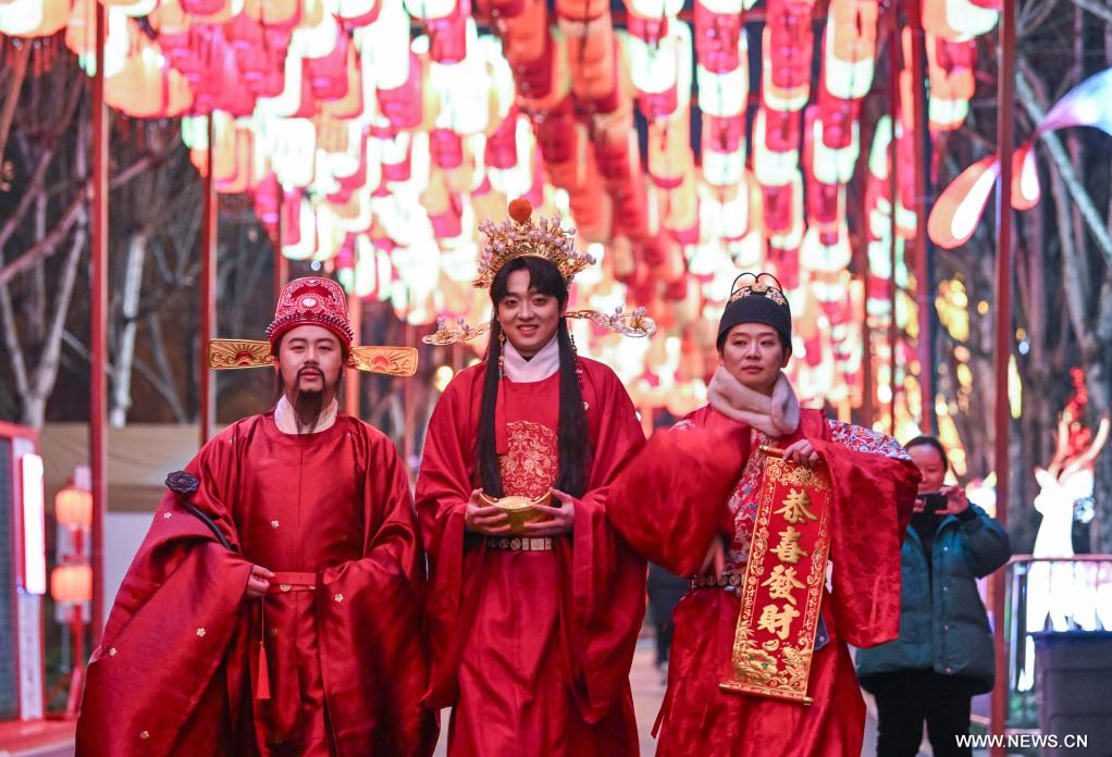 تشونغتشينغ 2 فبراير 2026 (شينخوا) في الصورة الملتقطة يوم 30 يناير 2026، موظفون يرتدون أزياء تقليدية خلال مهرجان الفوانيس الذي يقام في حديقة معرض البستنة في بلدية تشونغتشينغ بجنوب غربي الصين.
