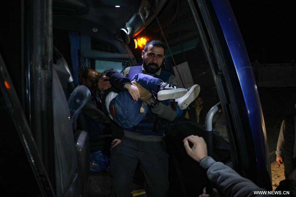 غزة 3 فبراير 2026 (شينخوا) في الصورة الملتقطة يوم 2 فبراير 2026، فلسطينيون عائدون عبر معبر رفح يصلون إلى مجمع ناصر الطبي في خان يونس، جنوبي قطاع غزة.