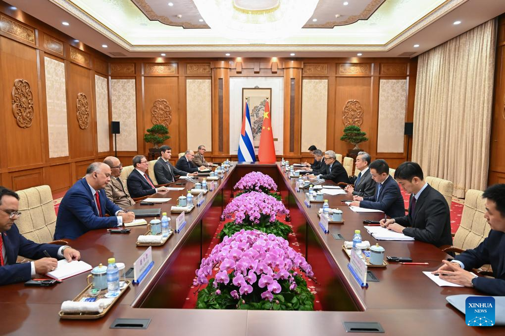 وأدلى وانغ بهذه التصريحات خلال محادثاته مع برونو رودريغيز باريلا، المبعوث الخاص لحزب وحكومة كوبا وعضو المكتب السياسي للجنة المركزية للحزب الشيوعي الكوبي ووزير خارجية كوبا.