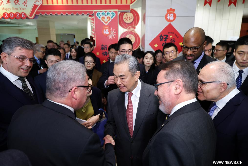 بكين 5 فبراير 2026 (شينخوا) استضاف وزير الخارجية الصيني، وانغ يي، حفل استقبال وزارة الخارجية الصينية بمناسبة السنة الصينية الجديدة 2026، في بكين اليوم (الخميس).