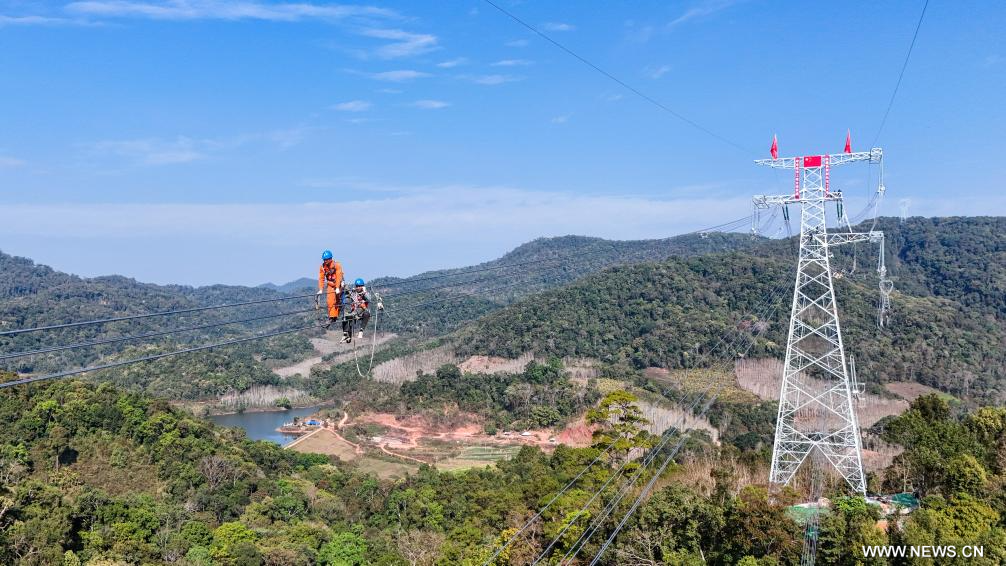 إكمال ربط الأسلاك لمشروع نقل الطاقة بين الصين ولاوس