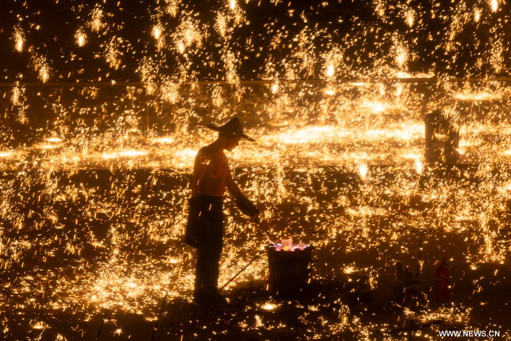 عرض ألعاب نارية بالحديد المنصهر في شانغهاي