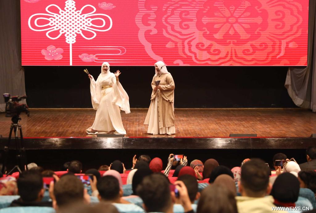 وشملت العروض الأخرى إلقاء قصائد صينية من قبل طلاب مصريين، واستعراضات للفنون القتالية، ومشاهد تمثيلية فكاهية تجسد حياة الطلاب الصينيين في مصر، كما تضمن الاحتفال مسابقة في اللغة الصينية حيث قام المشاركون المصريون بتكوين كلمات أو رموز من الجذور المعروضة على الشاشة.