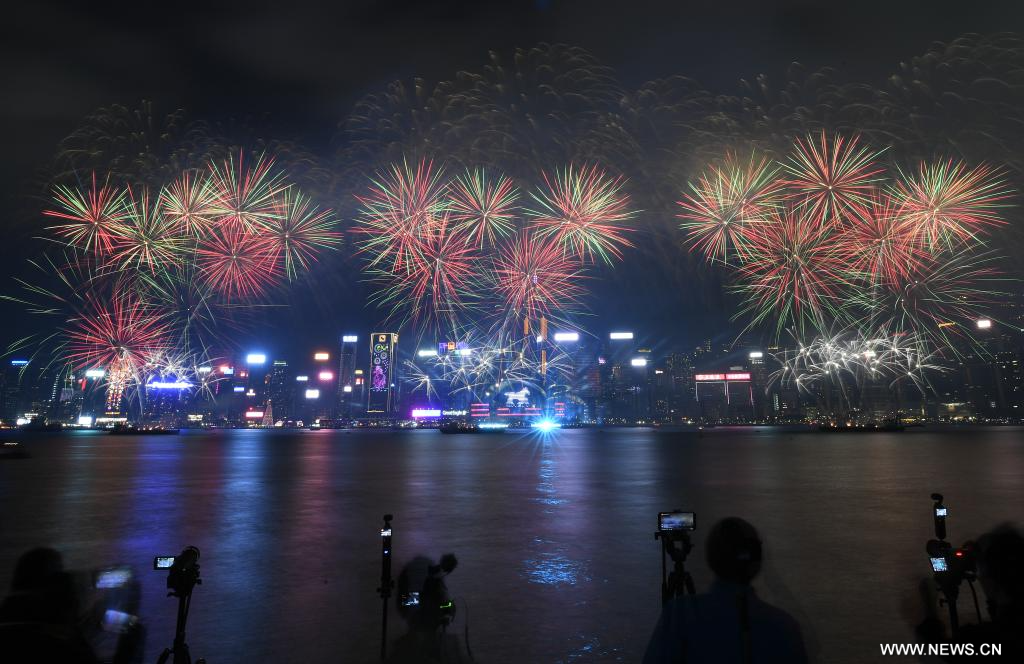 عرض للألعاب النارية في هونغ كونغ الصينية