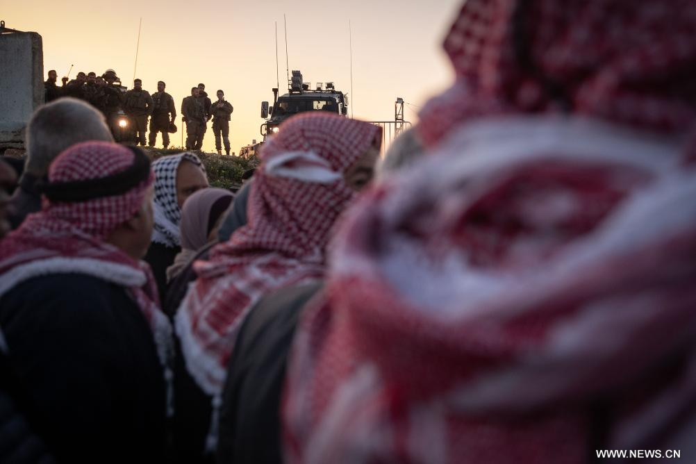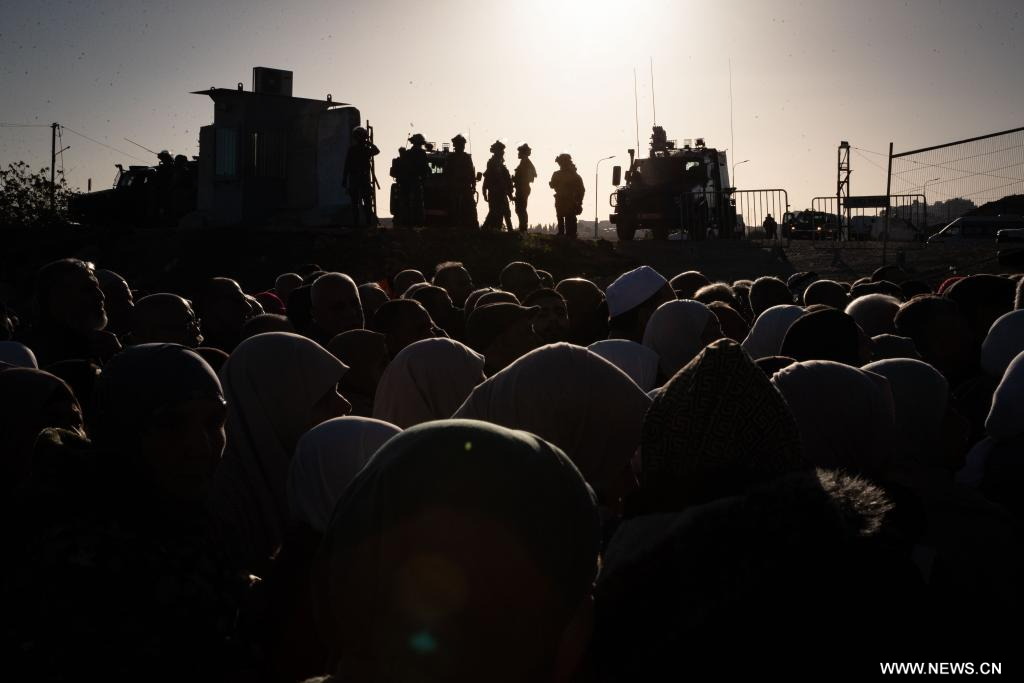 القدس 20 فبراير 2026 (شينخوا) في الصورة الملتقطة يوم 20 فبراير 2026، سكان من الضفة الغربية يصطفون للخضوع إلى عمليات التفتيش الأمني عند حاجز قلنديا، شمال القدس.