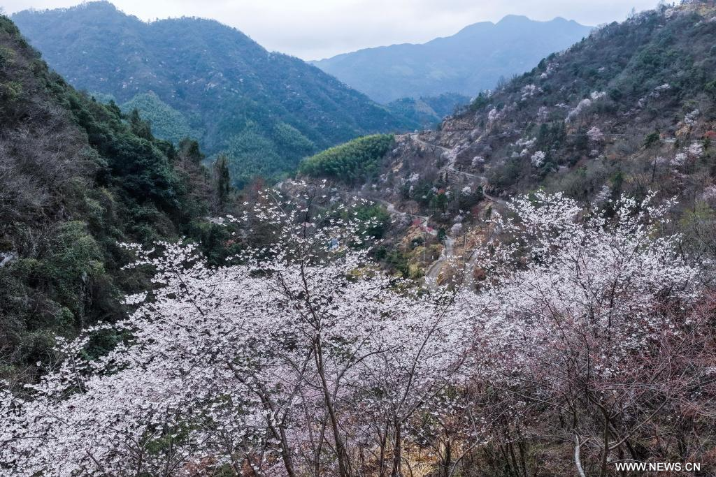 أزهار الكرز البرية في تشجيانغ بشرقي الصين