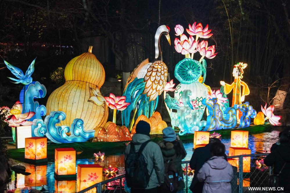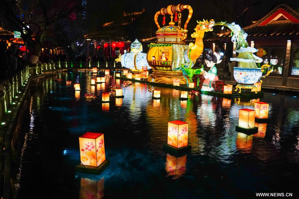 أضواء الفوانيس الزاهية تتلألأ مع مياه الينابيع في مدينة جينان شرقي الصين