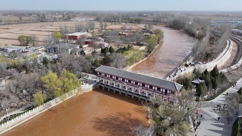 تشينغتونغشيا 25 مارس 2026 (شينخوا) في الصورة الملتقطة يوم 24 مارس 2026، جانب من بوابة سد مفتوحة لتحويل المياه من النهر الأصفر لأغراض الري في مدينة تشينغتونغشيا بمنطقة نينغشيا ذاتية الحكم لقومية هوي في شمال غربي الصين.