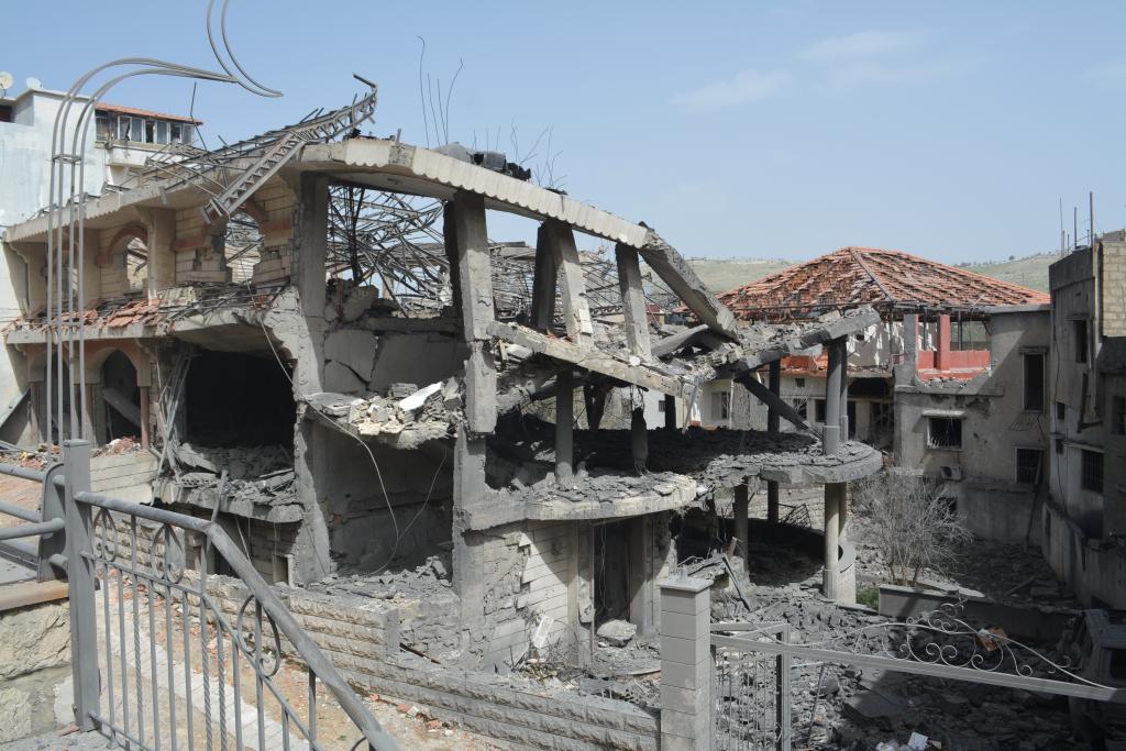 بيروت 5 أبريل 2026 (شينخوا) في الصورة الملتقطة يوم 4 أبريل 2026، مبان متضررة جراء غارات جوية إسرائيلية على بلدة شوكين في لبنان. أسفرت الغارات الجوية الإسرائيلية والهجمات بالطائرات المُسيّرة في أنحاء جنوبي لبنان عن مقتل ما لا يقل عن 14 شخصا وإصابة أكثر من 25 آخرين، حسبما أفادت وكالة الأنباء الوطنية اللبنانية، حيث جاء ذلك في وقت شنت فيه الطائرات الحربية الإسرائيلية غارات مكثفة على الضواحي الجنوبية لبيروت فجر يوم السبت وخلال ساعات الصباح.