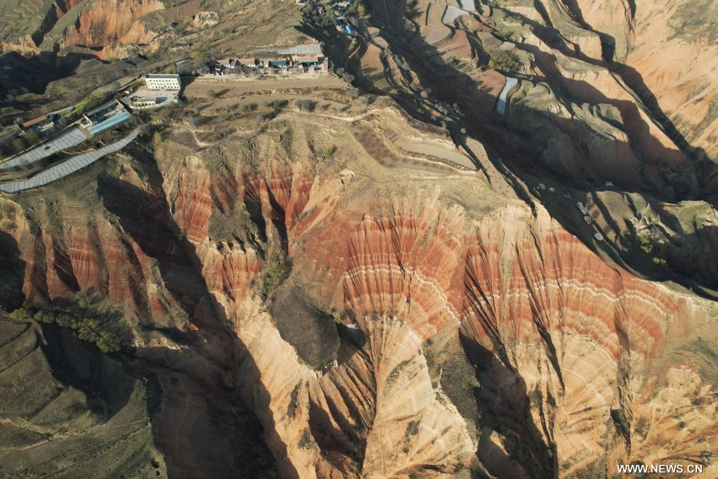 دونغشيانغ 5 أبريل 2026 (شينخوا) في الصورة الملتقطة يوم 3 أبريل 2026، منظر خلاب لتضاريس دانشيا في بلدة دونغيوان بمحافظة دونغشيانغ ذاتية الحكم التابعة لولاية لينشيا ذاتية الحكم لقومية هوي في مقاطعة قانسو شمال غربي الصين.