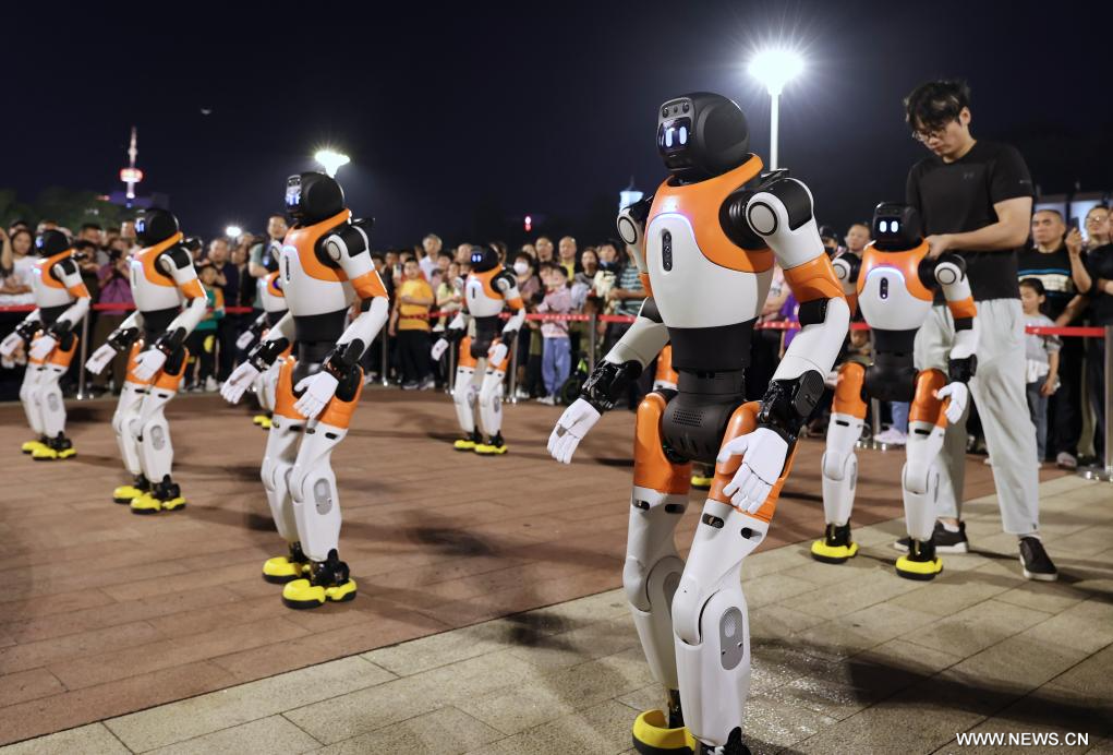 فوتشو 20 أبريل 2026 (شينخوا) في الصورة الملتقطة يوم 19 أبريل 2026، عرض لروبوتات ترقص في مدينة فوتشو بمقاطعة فوجيان في جنوب شرقي الصين. وقد أقيم العرض احتفالا بـ "قمة الصين الرقمية" التاسعة التي ستعقد في فوتشو يومي 29 و30 أبريل الجاري.
