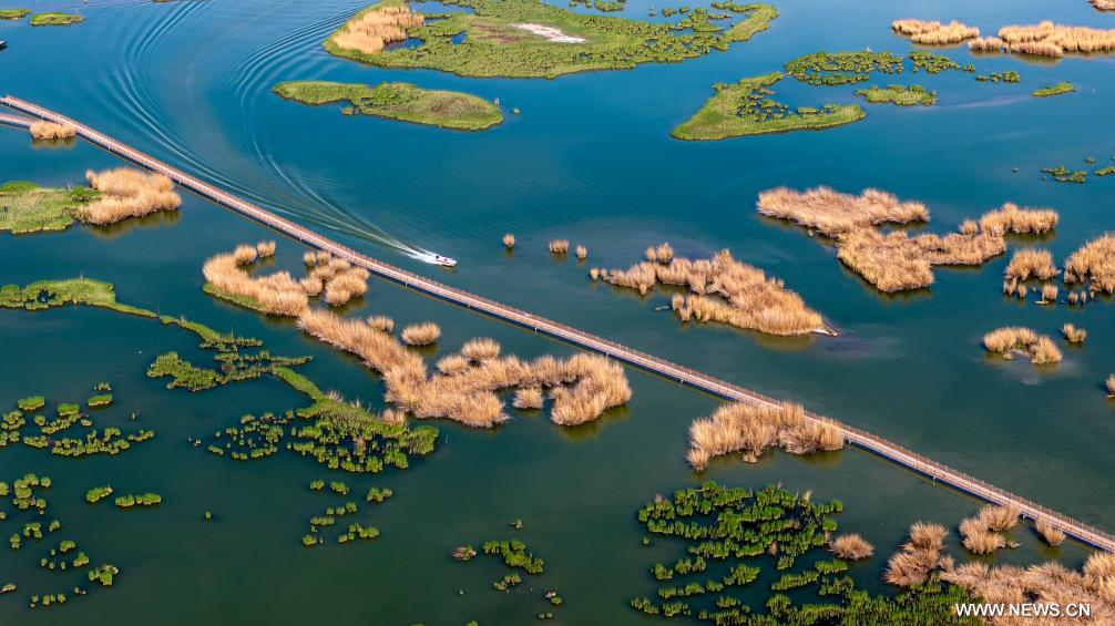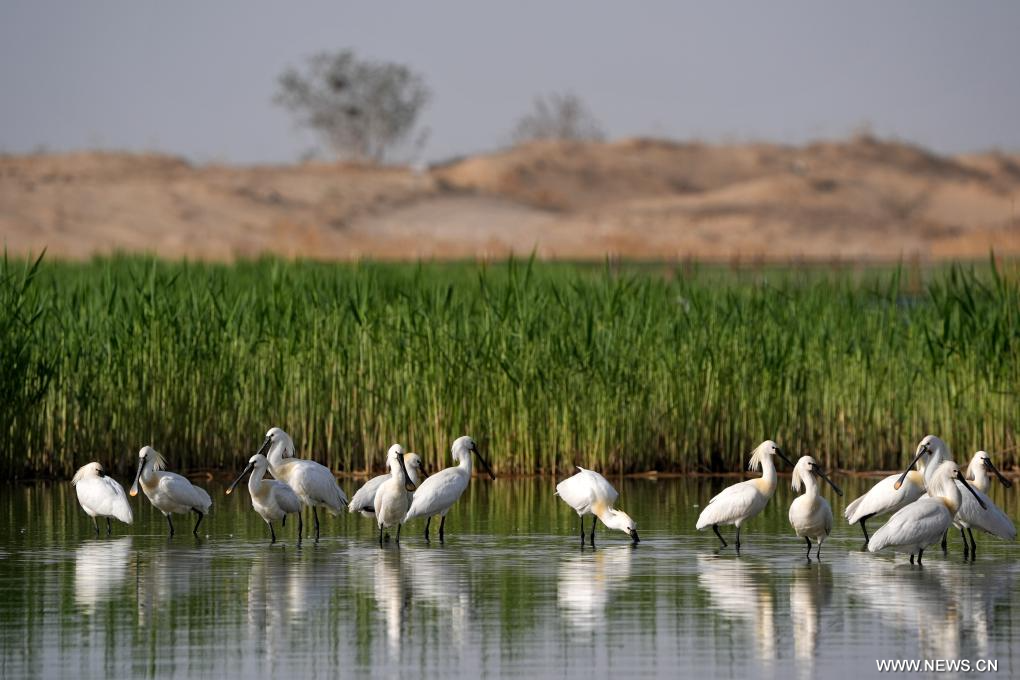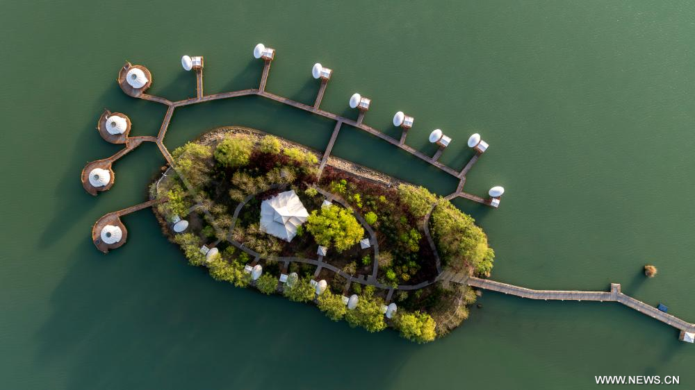 يينتشوان 20 أبريل 2026 (شينخوا) في الصورة الملتقطة يوم 18 أبريل 2026، جانب من منطقة شاهو المنظرية في مدينة شيتسويشان بمنطقة نينغشيا ذاتية الحكم لقومية هوي في شمال غربي الصين.