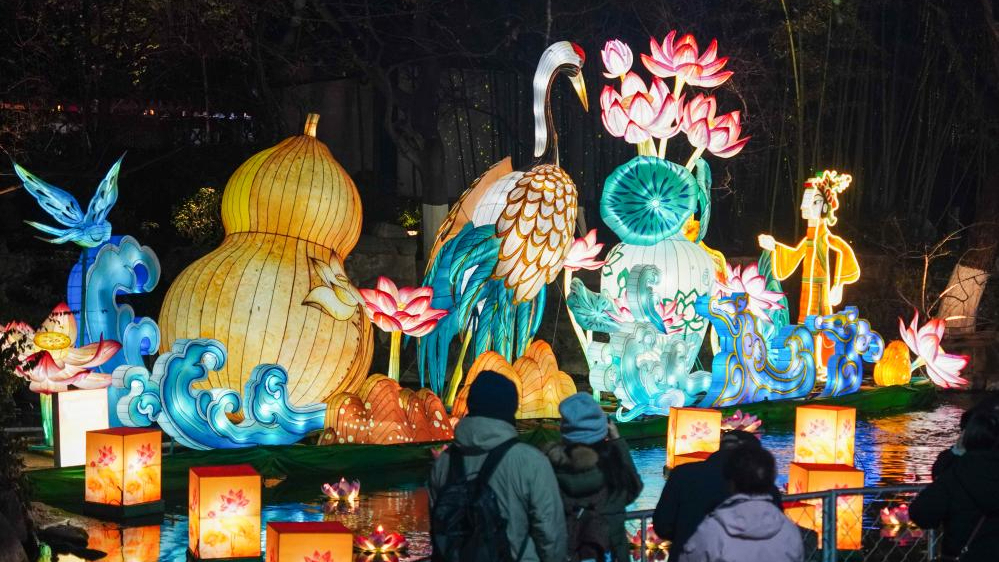 أضواء الفوانيس الزاهية تتلألأ مع مياه الينابيع في مدينة جينان شرقي الصين
