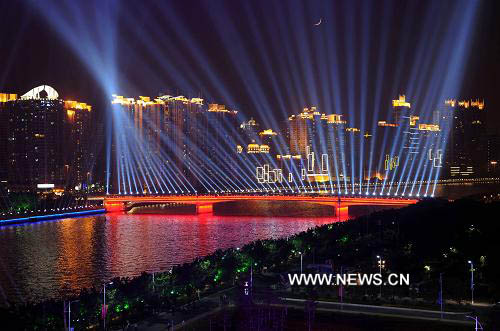قوانغتشو 9 نوفمبر 2010 (شينخوا) في الصورة الملتقطة يوم 8 نوفمبر 2010، منظر ليلي أخاذ لمدينة قوانغتشو، حاضرة مقاطعة قوانغدونغ بجنوب الصين، حيث ستقام الدورة السادسة عشرة للألعاب الآسيوية في الفترة من 12 إلى 27 نوفمبر الجاري.