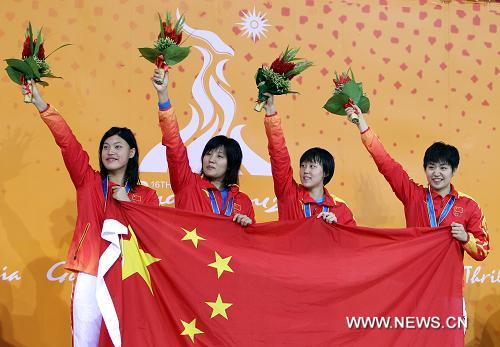 الصين تفوز بسباق التتابع الحر 100 م سباحة سيدات في آسياد قوانغتشو