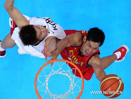 قوانغتشو 27 نوفمبر 2010 ( شينخوا) في الصورة الملتقطة يوم 26 نوفمبر 2010 ، جانب من مباراة كرة سلة بين المنتخب الصيني للرجال ونظيره الكوري الجنوبي . وفي نفس اليوم ، فاز المنتخب الصيني على المنتخب الكوري الجنوبي 77 / 71 في الدورة النهائي لكرة السلة للرجال في الألعاب الآسيوية التي تقام حاليا في قوانغتشو حاضرة مقاطعة قوانغدونغ بجنوب الصين .