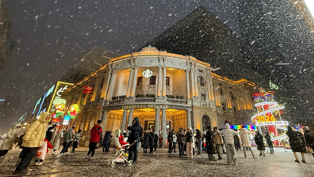تساقط الثلوج في بلدية تيانجين في شمالي الصين