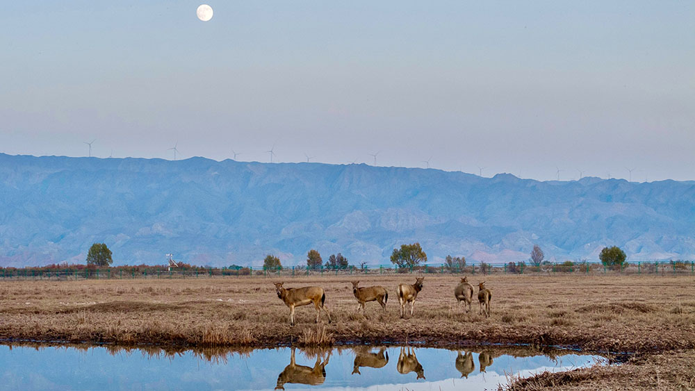 غزلان ميلو في محمية طبيعية للأراضي الرطبة بمنطقة نينغشيا الصينية