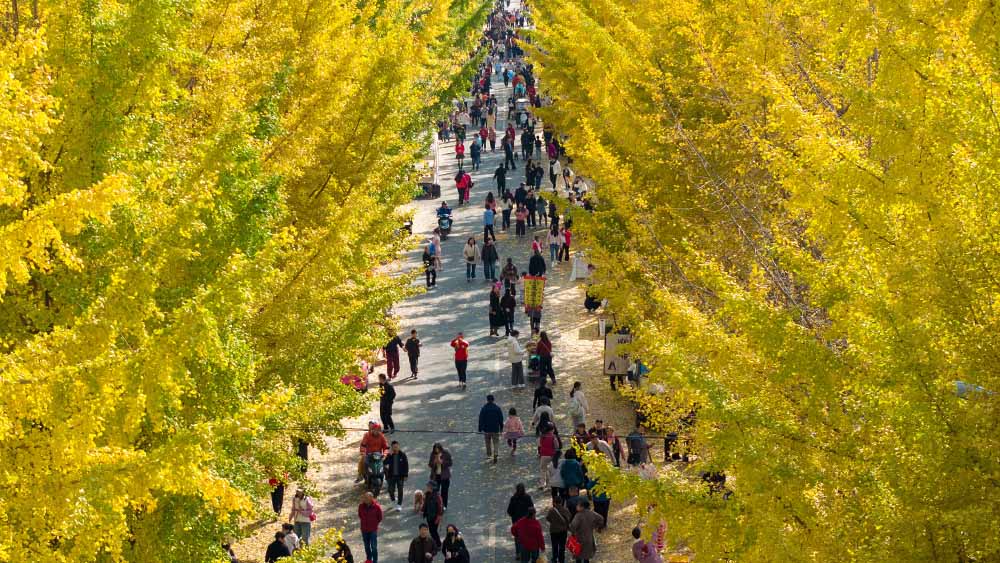 مناظر خلابة لأشجار الجنكة في وسط الصين