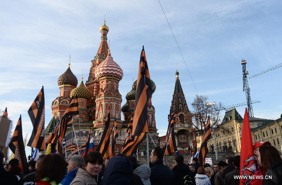 وكان حوالي 100 ألف شخص قد احتشدوا في مسيرة مرددين اغنية "نحن سويا" بالقرب من مبني الكرملين في قلب العاصمة الروسية موسكو على وقع موسيقي فرقة النخبة الروسية.
