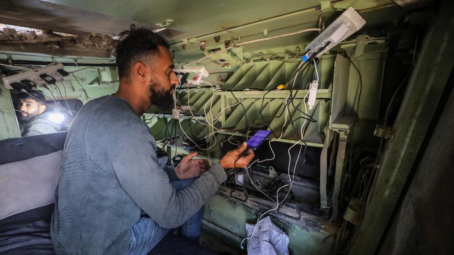 مقالة خاصة: شاب من غزة يحول مركبة عسكرية من مخلفات الجيش الإسرائيلي إلى نقطة لشحن الأجهزة الإلكترونية