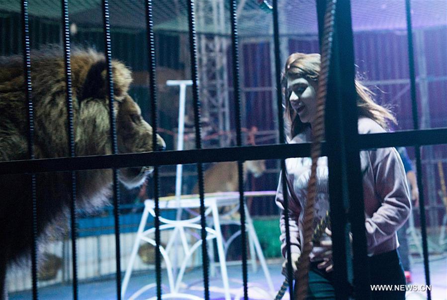 القاهرة 18 ديسمبر 2018 (شينخوا) في الصورة الملتقطة يوم 13 ديسمبر 2018، مروضة الأسود شروق إسماعيل تؤدي عرضا مع الأسد في القاهرة، حيث أسرت الفتاة البالغة من العمر 15 عاما قلوب المشاهدين حول قفص السيرك في استعراض مسائي رائع، حيث ولدت شروق في اسرة تشتهر بترويض الأسود، حيث اشتهر جدها بنجم ترويض أسود السيرك في القرن الـ19، كما تخصص ابيها وامها وعمها ايضا في ترويض الأسود.