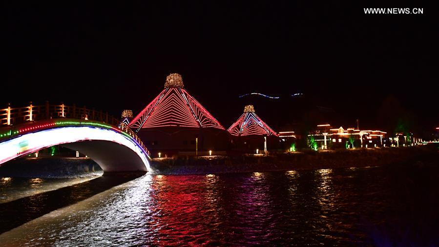 يوشو، تشينغهاي 17 أبريل 2019 (شينخوا) في الصورة الملتقطة يوم 14 أبريل 2019 منظر ليلي لولاية يوشو ذاتية الحكم لقومية التبت في مقاطعة تشينغهاي في شمال غربي الصين. وكانت هذه الولاية قد دمرت بزلزال كارثي بقوة 7.1 درجة في عام 2010، ما أسفر عن مقتل الآلاف. والآن انتصبت مدارس ومستشفيات ومساحات جديدة من بين الأنقاض، فيما يواصل الأهالي بذل جهودهم لبناء حياتهم الجديدة.